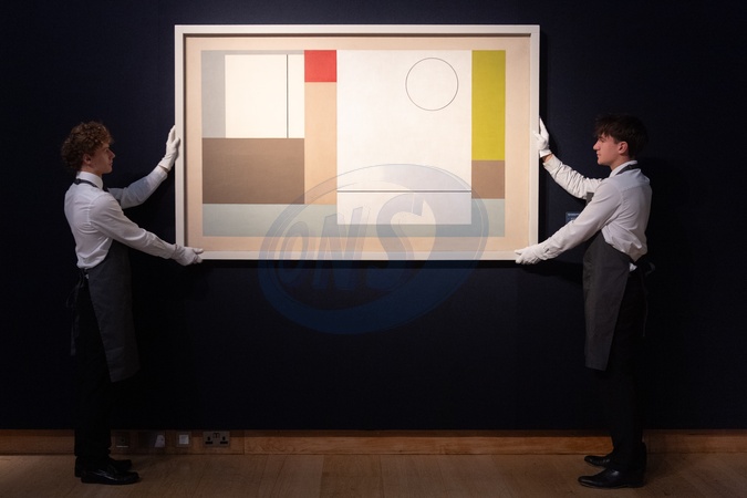 A staff member views 'December 1942 - April 1944 (abstract painting)' by Ben Nicholson (est. £800k - £1.2m) at Christie's 'Modern British and Irish Art Evening Sale' which is to go on auction on 22nd and 23rd October 2025 - Christie's King Street, London, England, UK on Friday 17 October, 2025., Credit:Justin Ng / Avalon