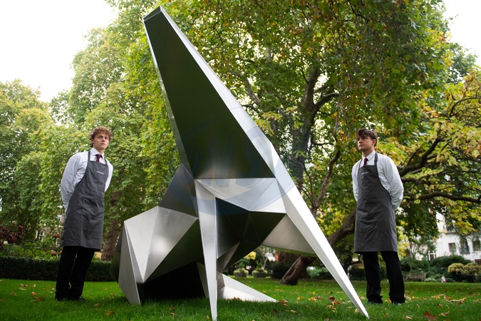 A staff member views 'Beast Alerted I' by Lynn Chadwick (est. £500k - £800k) at Christie's 'Modern British and Irish Art Evening Sale' which is to go on auction on 22nd and 23rd October 2025 - Christie's King Street, London, England, UK on Friday 17 October, 2025., Credit:Justin Ng / Avalon