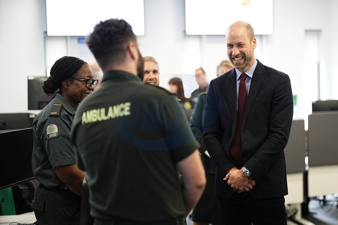The Prince of Wales meets call handlers and dispatchers in the Emergency Operations Control room where 999 calls are managed 24/7, during a visit to the London Ambulance Service at its headquarters in Waterloo. Picture date: Friday October 17, 2025., Credit:Aaron Chown / Avalon