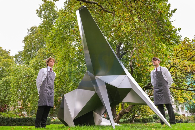 London, UK. 17th Oct 2025. Christie's staff with LYNN CHADWICK, Beast Alerted I, 1990. Estimate: £500,000-800,000. Modern British and Irish Art Evening Sale photocall at Christie's in London., Credit:Imageplotter / Avalon
