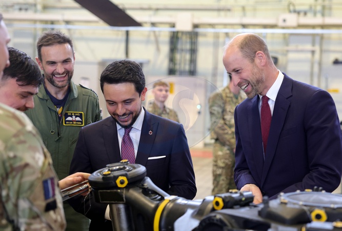 15/10/2025. RAF Benson, UK. The Prince of Wales and The Crown Prince of Jordan, Al Hussein bin Abdullah II during a visit to RAF Benson. Their Royal Highnesses received an overview of the work at RAF Benson and then went to No. 28 (AC) Sqn and met trainee aircrew and staff from No. 28 (AC) Sqn and No. 22 Sqn. The Prince and Crown Prince also went to the No. 28 (AC) Sqn hangar to meet helicopter technicians and view aircraft. The visit marks the strong relationship between The Prince of Wales and The Crown Prince of Jordan and their mutual respect and support for the Armed Forces., Credit:Pete Maclaine / Avalon