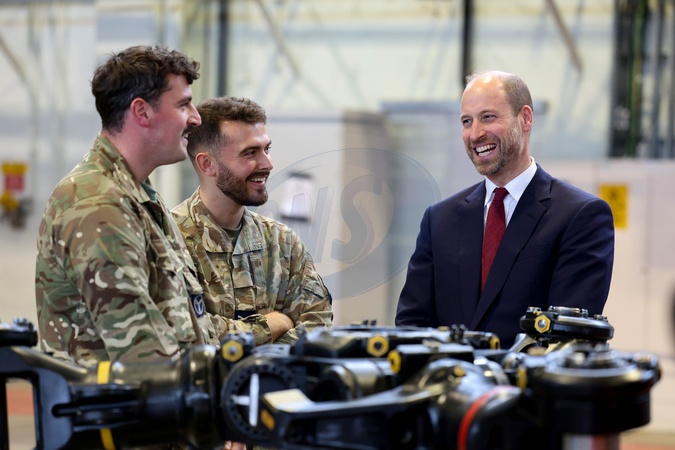 15/10/2025. RAF Benson, UK. The Prince of Wales and The Crown Prince of Jordan, Al Hussein bin Abdullah II during a visit to RAF Benson. Their Royal Highnesses received an overview of the work at RAF Benson and then went to No. 28 (AC) Sqn and met trainee aircrew and staff from No. 28 (AC) Sqn and No. 22 Sqn. The Prince and Crown Prince also went to the No. 28 (AC) Sqn hangar to meet helicopter technicians and view aircraft. The visit marks the strong relationship between The Prince of Wales and The Crown Prince of Jordan and their mutual respect and support for the Armed Forces., Credit:Pete Maclaine / Avalon