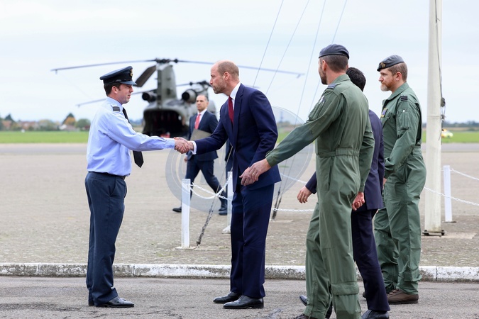 15/10/2025. RAF Benson, UK. The Prince of Wales and The Crown Prince of Jordan, Al Hussein bin Abdullah II during a visit to RAF Benson. Their Royal Highnesses received an overview of the work at RAF Benson and then went to No. 28 (AC) Sqn and met trainee aircrew and staff from No. 28 (AC) Sqn and No. 22 Sqn. The Prince and Crown Prince also went to the No. 28 (AC) Sqn hangar to meet helicopter technicians and view aircraft. The visit marks the strong relationship between The Prince of Wales and The Crown Prince of Jordan and their mutual respect and support for the Armed Forces., Credit:Pete Maclaine / Avalon