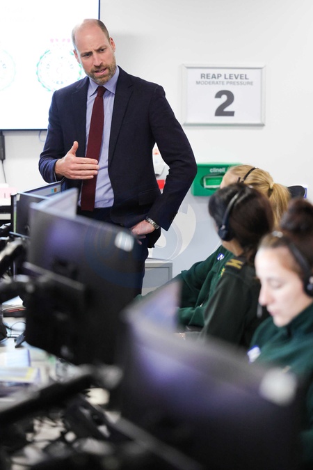 17/10/2025. London, UK. The Prince of Wales during a visit to the London Air Ambulance's headquarters in Waterloo, London. The Prince met staff who work in the wellbeing team at the headquarters and offer support and services to paramedics carrying out lifesaving work daily. His Royal Highness heard from paramedics and other front-line workers about their experiences and the importance of providing mental health support to those working in emergency services. The Prince also visited the Emergency Operations Control room where the team work 24/7 to manage 999 calls into the ambulance service in London and was able to hear from staff, including Call Handlers, Dispatchers and members of the Clinical Hub team about their different roles and how they help people daily over the phone and arrange help on scene. The Prince viewed the vehicles used by the LAS team including the world's first, purpose-built all-electric ambulance, and electric fast response cars. Finally, His Royal Highness met specialist paramedics and took part in a training demonstration., Credit:Pete Maclaine / Avalon