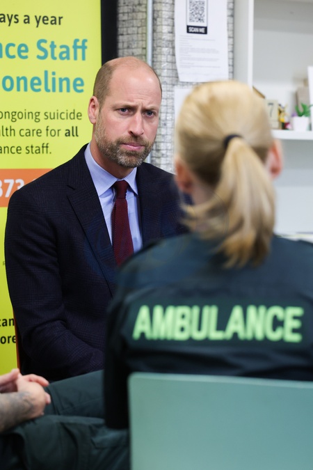 17/10/2025. London, UK. The Prince of Wales during a visit to the London Air Ambulance's headquarters in Waterloo, London. The Prince met staff who work in the wellbeing team at the headquarters and offer support and services to paramedics carrying out lifesaving work daily. His Royal Highness heard from paramedics and other front-line workers about their experiences and the importance of providing mental health support to those working in emergency services. The Prince also visited the Emergency Operations Control room where the team work 24/7 to manage 999 calls into the ambulance service in London and was able to hear from staff, including Call Handlers, Dispatchers and members of the Clinical Hub team about their different roles and how they help people daily over the phone and arrange help on scene. The Prince viewed the vehicles used by the LAS team including the world's first, purpose-built all-electric ambulance, and electric fast response cars. Finally, His Royal Highness met specialist paramedics and took part in a training demonstration., Credit:Pete Maclaine / Avalon