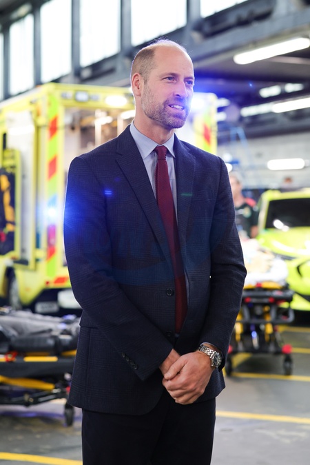 17/10/2025. London, UK. The Prince of Wales during a visit to the London Air Ambulance's headquarters in Waterloo, London. The Prince met staff who work in the wellbeing team at the headquarters and offer support and services to paramedics carrying out lifesaving work daily. His Royal Highness heard from paramedics and other front-line workers about their experiences and the importance of providing mental health support to those working in emergency services. The Prince also visited the Emergency Operations Control room where the team work 24/7 to manage 999 calls into the ambulance service in London and was able to hear from staff, including Call Handlers, Dispatchers and members of the Clinical Hub team about their different roles and how they help people daily over the phone and arrange help on scene. The Prince viewed the vehicles used by the LAS team including the world's first, purpose-built all-electric ambulance, and electric fast response cars. Finally, His Royal Highness met specialist paramedics and took part in a training demonstration., Credit:Pete Maclaine / Avalon