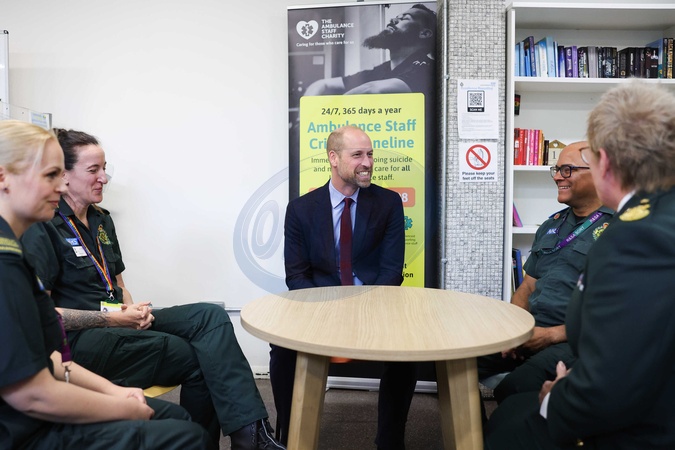 17/10/2025. London, UK. The Prince of Wales during a visit to the London Air Ambulance's headquarters in Waterloo, London. The Prince met staff who work in the wellbeing team at the headquarters and offer support and services to paramedics carrying out lifesaving work daily. His Royal Highness heard from paramedics and other front-line workers about their experiences and the importance of providing mental health support to those working in emergency services. The Prince also visited the Emergency Operations Control room where the team work 24/7 to manage 999 calls into the ambulance service in London and was able to hear from staff, including Call Handlers, Dispatchers and members of the Clinical Hub team about their different roles and how they help people daily over the phone and arrange help on scene. The Prince viewed the vehicles used by the LAS team including the world's first, purpose-built all-electric ambulance, and electric fast response cars. Finally, His Royal Highness met specialist paramedics and took part in a training demonstration., Credit:Pete Maclaine / Avalon