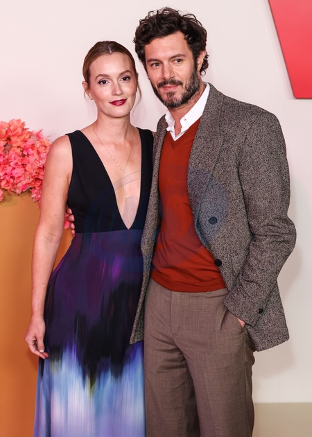 HOLLYWOOD, LOS ANGELES, CALIFORNIA, USA - OCTOBER 16: Leighton Meester wearing Caroline's Couture by Chopard and husband Adam Brody arrive at the Los Angeles Premiere Of Netflix's 'Nobody Wants This' Season 2 held at The Egyptian Theatre Hollywood on October 16, 2025 in Hollywood, Los Angeles, California, United States., Credit:Xavier Collin / Avalon
