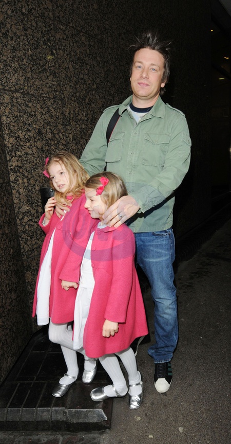 Jamie Oliver z corkami w szpitalu w ktorym urodzila sie jego trzecia coreczka Petal Blossom Rainbow
