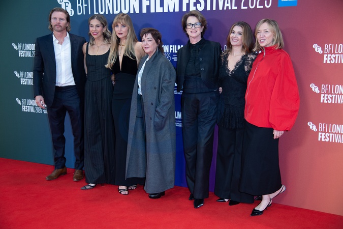 (L-R) - Thad Luckinbill, Molly Smith, Jennifer Lawrence, Lynne Ramsay, Andrea Calderwood, Justine Ciarrocchi, Catherine George attends the Headline Gala of 'Die, My Love' at The 69th BFI London Film Festival at Royal Festival Hall, Southbank, London, England, UK on Friday 17 October, 2025., Credit:Justin Ng / Avalon