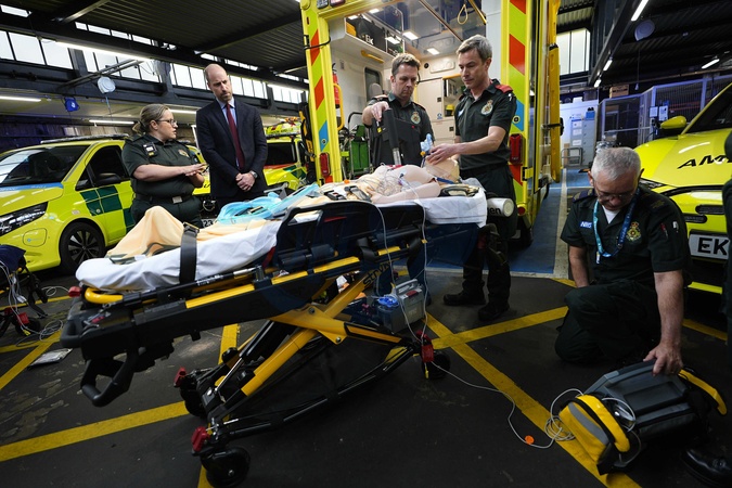 The Prince of Wales (second left) viewing a training demonstration during a visit to the London Ambulance Service at its headquarters in Waterloo. Picture date: Friday October 17, 2025., Credit:Aaron Chown / Avalon
