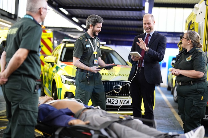 The Prince of Wales takes part in a training demonstration during a visit to the London Ambulance Service at its headquarters in Waterloo. Picture date: Friday October 17, 2025., Credit:Aaron Chown / Avalon