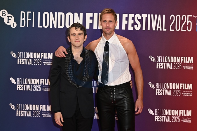 Harry Melling and Alexander Skarsgĺrd attends "Pillion" Premiere during the BFI London Film Festival, at the Southbank Centre, Royal Festival Hall in London, England. UK. Saturday 18th October 2025, Credit:James Warren / Avalon