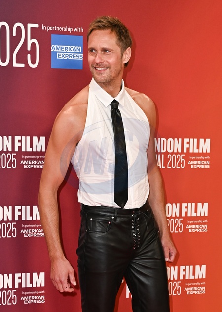 Alexander Skarsgĺrd attends "Pillion" Premiere during the BFI London Film Festival, at the Southbank Centre, Royal Festival Hall in London, England. UK. Saturday 18th October 2025, Credit:James Warren / Avalon