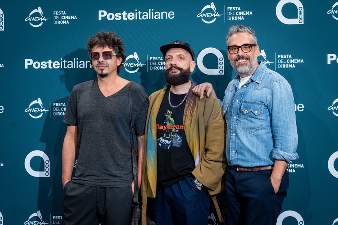 Riccardo Sinigallia, Giacomo Triglia and Dario Brunori attend the "Brunori Sas – Il Tempo Delle Noci” photocall during during the 20th Rome Film Festival at Auditorium Parco Della Musica in Rome, Italy on 19 October, 2025., Credit:Stefano Costantino TTL / Avalon