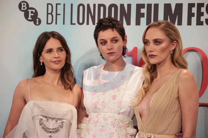Felicity Jones, Emma Corrin and Maika Monroe at 100 Nights of Hero premiere and closing night, 69th BFI London Film Festival, UK on 19th October 2025, Credit:James Shaw / Avalon