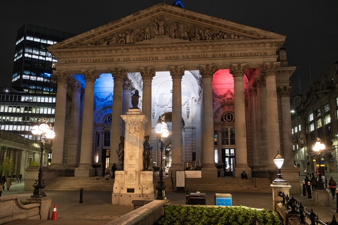 Royal Exchange at night, City of London, London,. United Kingdom. 17 October 2025, Credit:Mark Fairhurst / Avalon