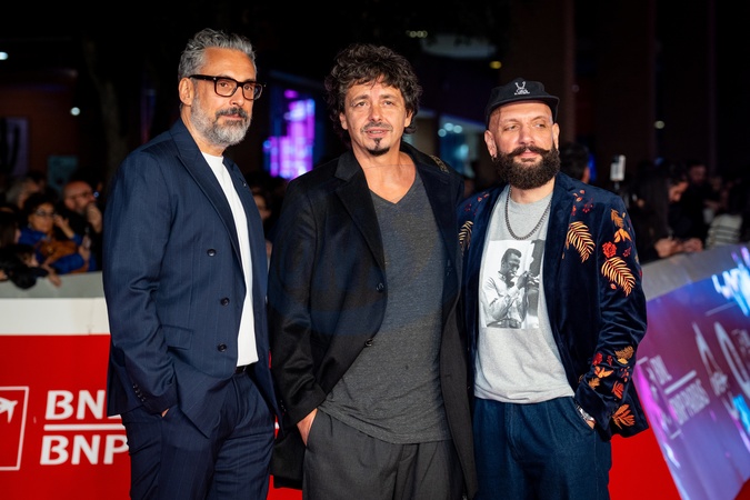 Dario Brunori aka Brunori Sas, Riccardo Sinigallia and Giacomo Triglia attend the "Brunori Sas – Il Tempo Delle Noci" red carpet during the 20th Rome Film Festival at Auditorium Parco Della Musica in Rome, Italy on 19 October 2025., Credit:Stefano Costantino TTL / Avalon