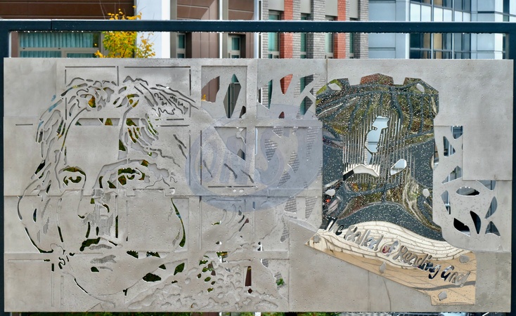 A new Oscar Wilde artwork has been unveiled at Readings newest district Station Hill. The silver plaque depicts the face of Oscar Wilde who was an inmate of Reading Gaol with part of Reading Prison opposite. Oscar Wilde wrote the Ballad of Reading Gaol after his release from incarceration. Station Hill has recently been completed, connecting people and Reading. It's Reading's vibrant new destination, a thriving hub for community, lifestyle, and business., Credit:Geoffrey Swaine / Avalon