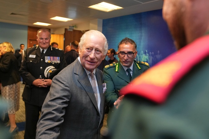 Britain's King Charles III meets emergency service personnel at Greater Manchester Police Headquarters in Manchester, England, Monday, Oct. 20, 2025 to hear from staff representing Great Manchester's Police, Fire and Rescue and Ambulance services about their roles responding to recent events and protecting people in the area., Credit:Alastair Grant / Avalon