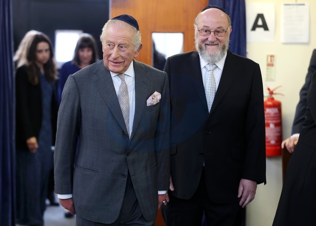 MANCHESTER, ENGLAND - OCTOBER 20: King Charles III and Chief Rabbi Sir Ephraim Mirvis during a visit to Heaton Park Hebrew Congregation Synagogue on October 20, 2025 in Manchester, England. The King is visiting Manchester to show his support for the Jewish community in the city, following the attack at Heaton Park Hebrew Congregation Synagogue on October 02., Credit:Chris Jackson / Avalon