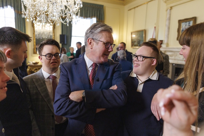 21/10/2025. London, United Kingdom. Prime Minister Keir Starmer speaks with members of the Ups and Downs theatre group as he hosts a reception for award winners and families from the Pride of Britain in 10 Downing Street., Credit:Simon Dawson / Avalon