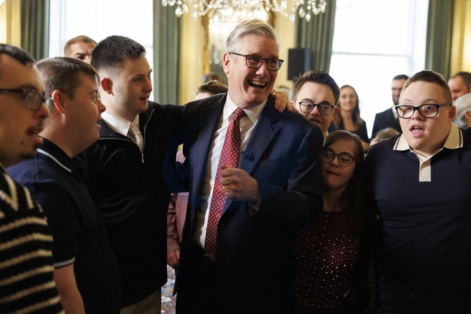 21/10/2025. London, United Kingdom. Prime Minister Keir Starmer speaks with members of the Ups and Downs theatre group as he hosts a reception for award winners and families from the Pride of Britain in 10 Downing Street., Credit:Simon Dawson / Avalon