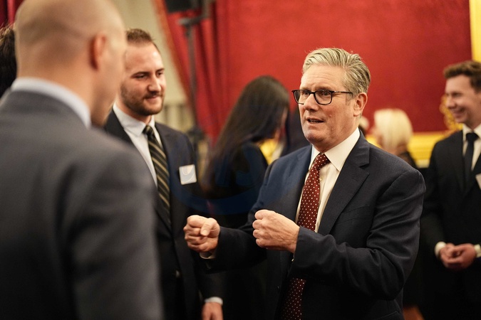 Prime Minister Sir Keir Starmer speaks with guests during a reception, attended by King Charles III, for Western Balkans leaders at St James's Palace, central London, on the eve of the Western Balkans Leaders' Summit. Picture date: Tuesday October 21, 2025., Credit:Aaron Chown / Avalon