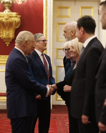 21/10/2025. London, United Kingdom. Prime Minister Keir Starmer speaks with Prime Minister of Romania Edi Rama as they join King Charles III at a Western Balkans reception at St James's Palace., Credit:Lauren Hurley / Avalon