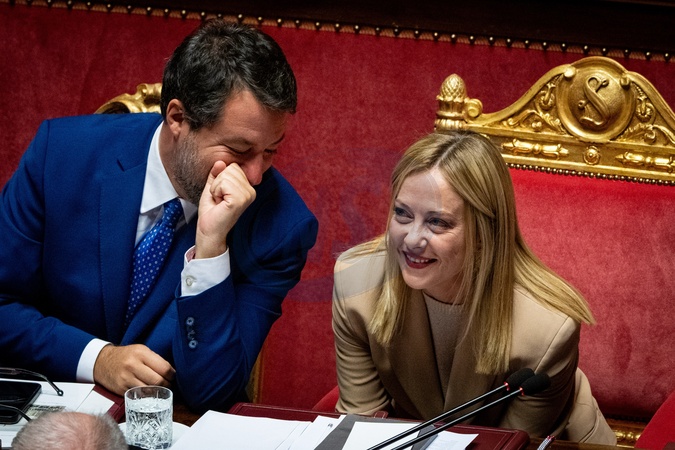 Italian Prime Minister Giorgia Meloni addresses the Italian Senate ahead of the next European Council at Palazzo Madama in Rome, Italy, on 22 October 2025.