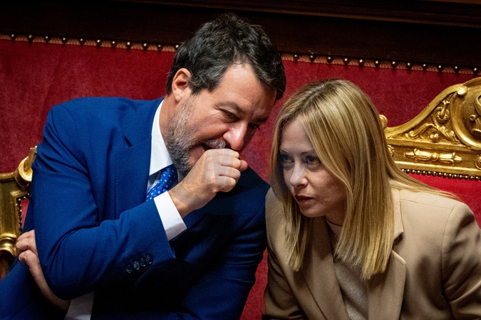 Italian Prime Minister Giorgia Meloni addresses the Italian Senate ahead of the next European Council at Palazzo Madama in Rome, Italy, on 22 October 2025.