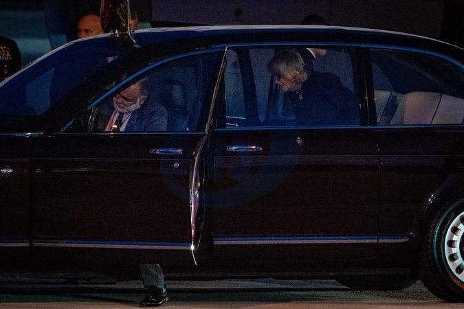 Britain's King Charles III and Queen Camilla arrive at Ciampino 31st Wing Airport in the outskirts of Rome, Italy, on 22 October 2025.