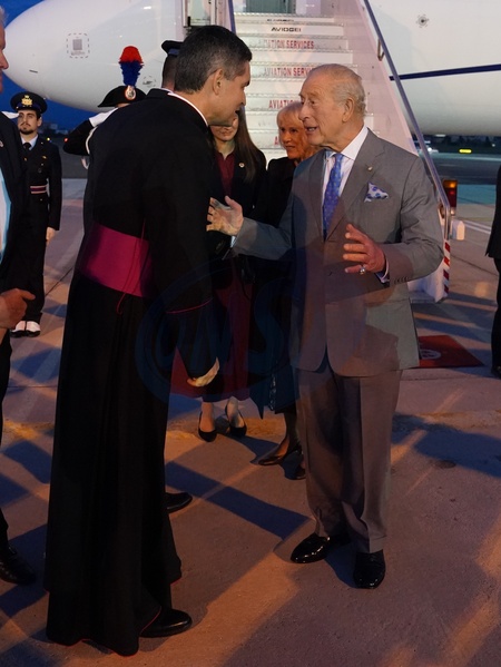 The King and Queen arrive in Rome to undertake an historic State Visit to the Holy See Their Majesties will join His Holiness Pope Leo XIV to celebrate the 2025 Jubilee year. Traditionally marked every 25 years, the Jubilee is a special time for the Catholic Church. Picture Arthur Edwards, Credit:Unknown / Avalon