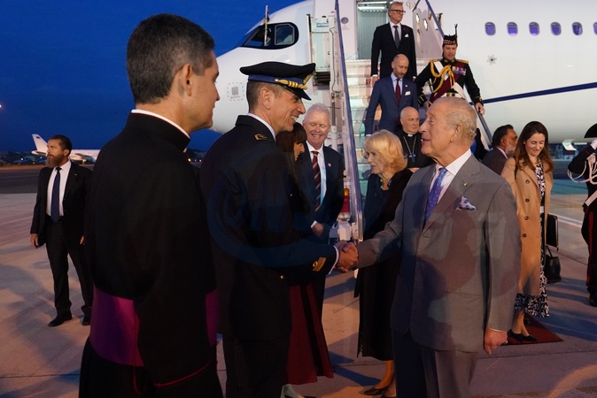 The King and Queen arrive in Rome to undertake an historic State Visit to the Holy See Their Majesties will join His Holiness Pope Leo XIV to celebrate the 2025 Jubilee year. Traditionally marked every 25 years, the Jubilee is a special time for the Catholic Church. Picture Arthur Edwards, Credit:Unknown / Avalon