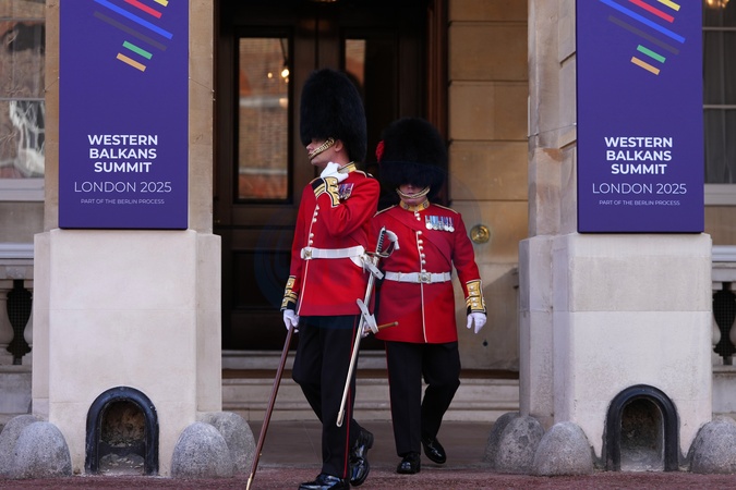 Members of the armed forces prepare for the arrival of leaders of six Western Balkan nations and British and European officials for a Western Balkans Summit in London, Wednesday, Oct. 22, 2025.(AP Photo/Kirsty Wigglesworth, Pool), Credit:Kirsty Wigglesworth / Avalon