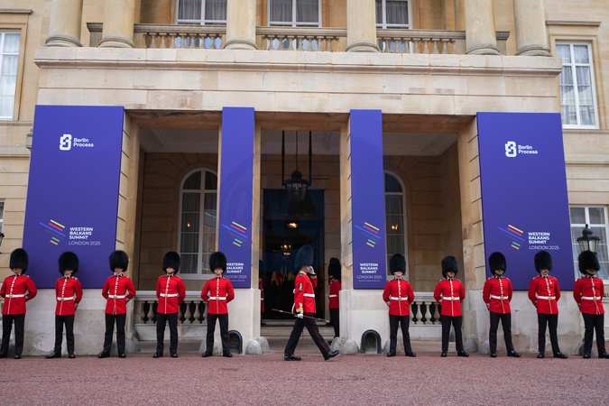 Members of the armed forces prepare for the arrival of leaders of six Western Balkan nations and British and European officials for a Western Balkans Summit in London, Wednesday, Oct. 22, 2025.(AP Photo/Kirsty Wigglesworth, Pool), Credit:Kirsty Wigglesworth / Avalon