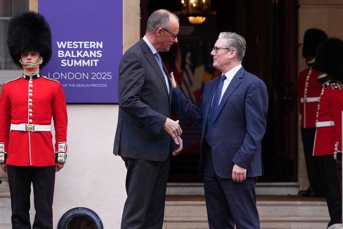 Britain's Prime Minister Keir Starmer welcomes German Chancellor Friedrich Merz to a meeting of leaders of six Western Balkan nations with British and European officials at a Western Balkans Summit in London, Wednesday, Oct. 22, 2025.(AP Photo/Kirsty Wigglesworth, Pool), Credit:Kirsty Wigglesworth / Avalon