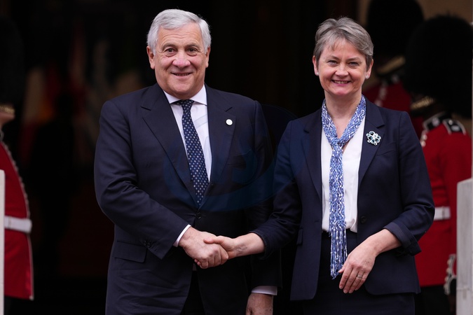 Britain's Foreign Secretary Yvette Cooper welcomes Italy's Foreign Minister Antonio Tajani to a meeting of leaders of six Western Balkan nations with British and European officials at a Western Balkans Summit in London, Wednesday, Oct. 22, 2025.(AP Photo/Kirsty Wigglesworth, Pool), Credit:Kirsty Wigglesworth / Avalon