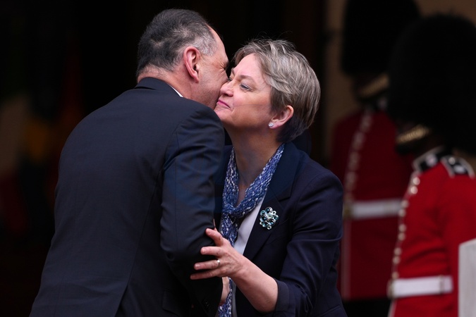 Britain's Foreign Secretary Yvette Cooper welcomes Greece's Foreign Minister Georgios Gerapetritis to a meeting of leaders of six Western Balkan nations with British and European officials at a Western Balkans Summit in London, Wednesday, Oct. 22, 2025.(AP Photo/Kirsty Wigglesworth, Pool), Credit:Kirsty Wigglesworth / Avalon