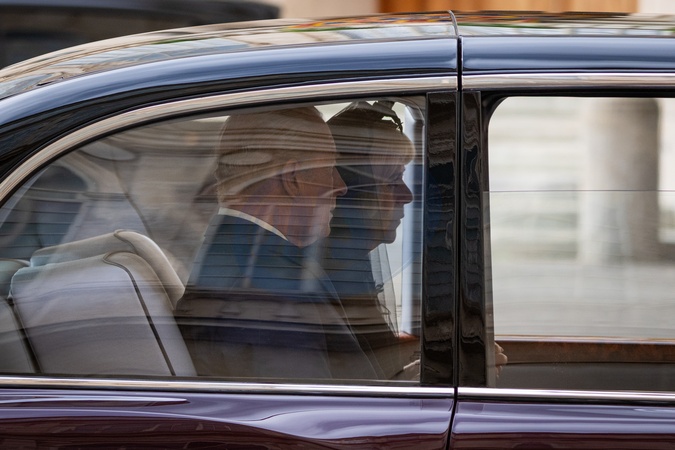 Britain's King Charles III and Queen Camilla arrive in the St. Damasus Courtyard at the Vatican for a state visit, where they will meet with Pope Leo XIV in Vatican City, Vatican, on 23 October 2025.