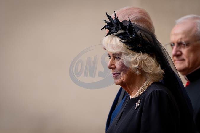 Britain's King Charles III and Queen Camilla arrive in the St. Damasus Courtyard at the Vatican for a state visit, where they will meet with Pope Leo XIV and pray with him in the Sistine Chapel in Vatican City, Vatican, on 23 October 2025., Credit:Stefano Costantino TTL / Avalon