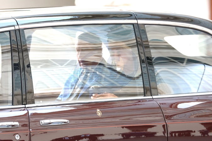 October 23, 2025, Vatican City. San Damaso Courtyard. Arrival of King Charles III of England with Queen Camilla for the meeting with the Pope. Pictured: King Charles III of England with Queen Camilla welcomed by Monsignor Leonardo Sapienza and the gentlemen of His Holiness., Credit:Maria Laura Antonelli / Avalon