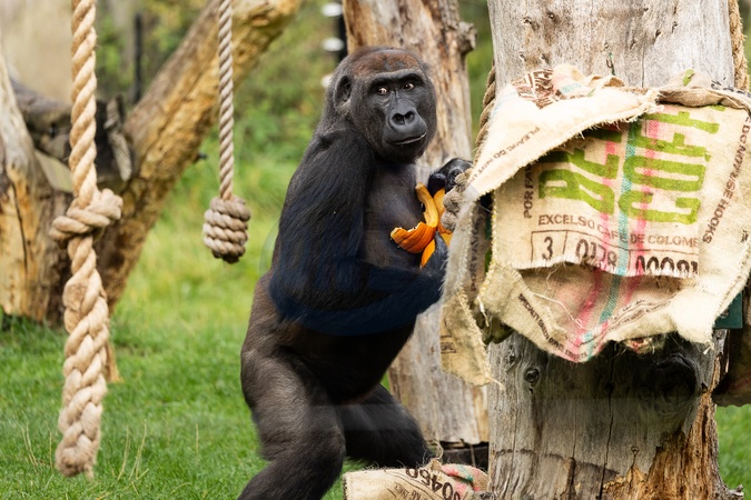 Gernot, a Western lowland gorilla at London Zoo enjoys a Halloween pumpkin on 22nd October 2025 in London, England ahead of London Zoo's Boo at the Zoo celebrations this half term., Credit:Tim Whitby / Avalon