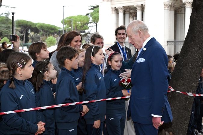 King Charles III visit St Paul's School and members of the public and congregation during her visit to the Papal Basilica and Abbey of St. Paul's Outside the Walls.Rome, Italy 23 Oct 2025, Credit:Maria Laura Antonelli / Avalon