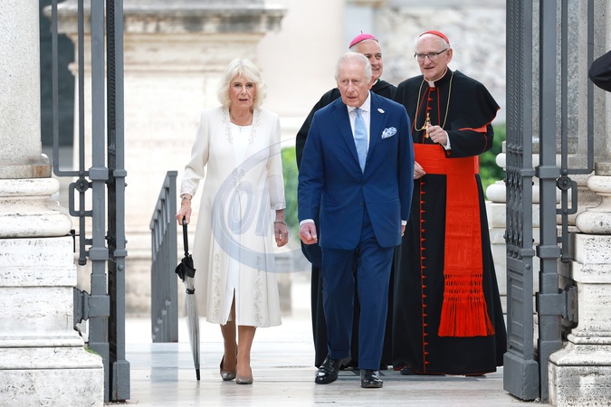 King Charles III and Queen Camilla visit the Papal Basilica and Abbey of St. Paul's Outside the Walls to attend an ecumenical service in recognition of His Majesty becoming 'Royal Confrater' of the Abbey of St Paul's. The Children of the Choir of His Majesty's Chapel Royal and the Choir of St. George's Chapel, Windsor, will perform. Rome, Italy 23 Oct 2025, Credit:Maria Laura Antonelli / Avalon