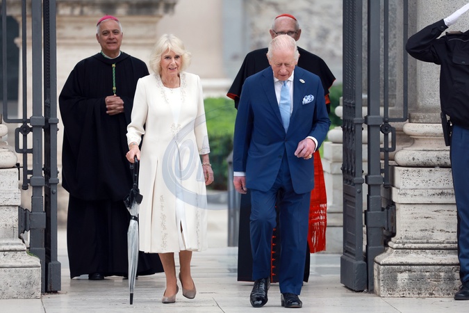 King Charles III and Queen Camilla visit the Papal Basilica and Abbey of St. Paul's Outside the Walls to attend an ecumenical service in recognition of His Majesty becoming 'Royal Confrater' of the Abbey of St Paul's. The Children of the Choir of His Majesty's Chapel Royal and the Choir of St. George's Chapel, Windsor, will perform. Rome, Italy 23 Oct 2025, Credit:Maria Laura Antonelli / Avalon