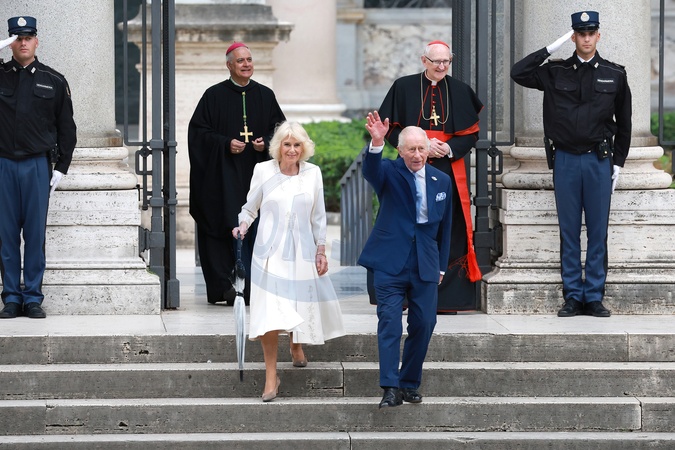 King Charles III and Queen Camilla visit the Papal Basilica and Abbey of St. Paul's Outside the Walls to attend an ecumenical service in recognition of His Majesty becoming 'Royal Confrater' of the Abbey of St Paul's. The Children of the Choir of His Majesty's Chapel Royal and the Choir of St. George's Chapel, Windsor, will perform. Rome, Italy 23 Oct 2025, Credit:Maria Laura Antonelli / Avalon