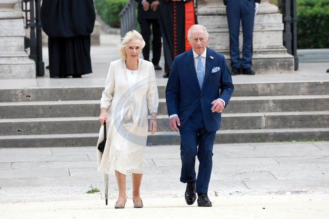 King Charles III and Queen Camilla visit the Papal Basilica and Abbey of St. Paul's Outside the Walls to attend an ecumenical service in recognition of His Majesty becoming 'Royal Confrater' of the Abbey of St Paul's. The Children of the Choir of His Majesty's Chapel Royal and the Choir of St. George's Chapel, Windsor, will perform. Rome, Italy 23 Oct 2025, Credit:Maria Laura Antonelli / Avalon