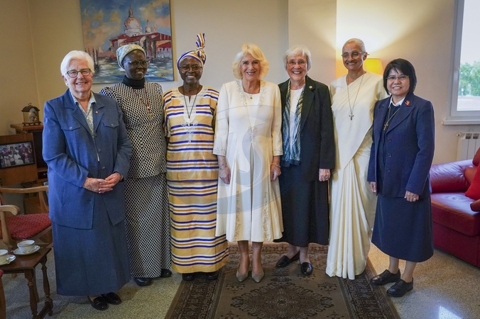 Queen Camilla, accompanied by Executive Secretary of the International Union of Superiors General, Sister Roxanne Schares, meets the sisters from the IUSG, Vatican City, 23 October 2025., Credit:Arthur Edwards / Avalon