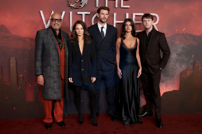 Laurence Fishburne, Freya Allan, Liam Hemsworth, Anya Chalotra and Joey Batey at The Witcher season 4 global premiere, Curzon Mayfair cinema,London, UK on 23rd October 2025, Credit:James Shaw / Avalon